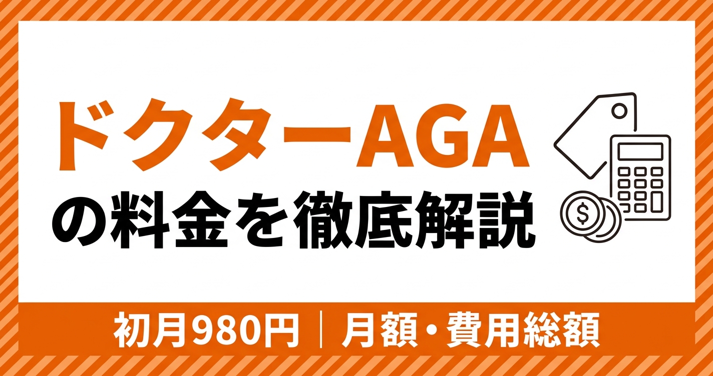 「ドクターAGAの料金は高い?」「初月980円の後、いくらかかる?」——AGA治療を検討する上で最も気になる料金面を、月額・初月・総額費用まで徹底解説します。