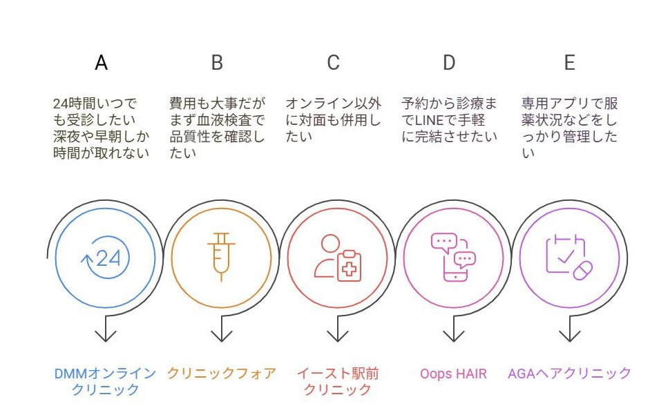 逆に「治療前に必ず対面で医師に相談したい人」や「血液検査で事前に安全性を確認したい人」は、ほかの選択肢も検討しましょう。